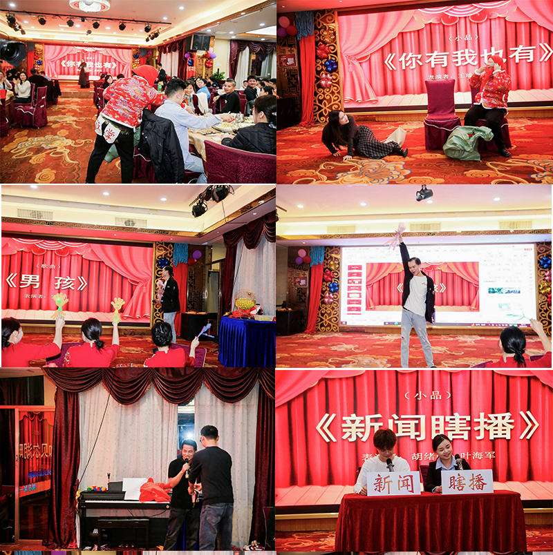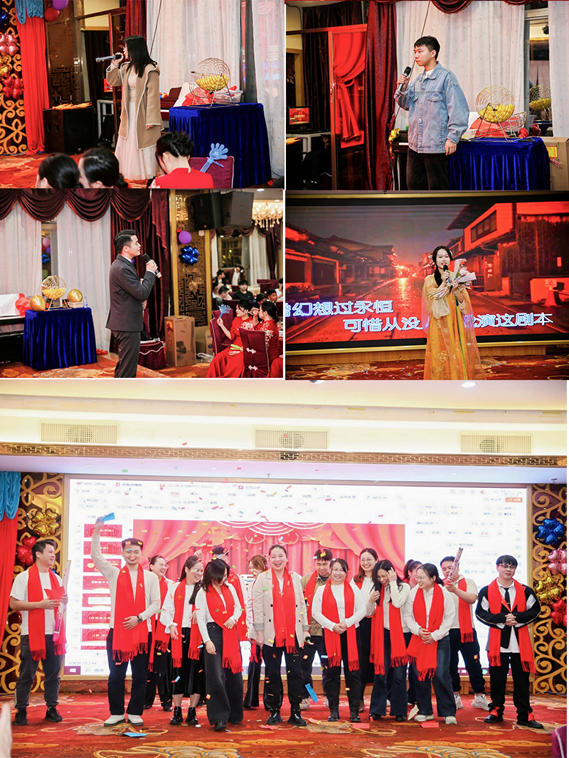 The gala featured a wide variety of exciting shows, fully showcasing the talents and team spirit of RZX employees. Wang Yu from the Marketing Department performed the piano piece “Castle in the Sky,” dreamlike and enchanting, vividly expressing romance and vastness. Wang Tiansheng from the Marketing Department sang “Red Sun,” bursting with passion and conveying powerful positive energy and fighting spirit. Wang Jiaqin from the Foreign Trade Department presented a Dance Medley blending multiple styles and radiating youthful vitality. Wen Zhendou and Quan Hongzhi from the Customization Department sang “Run,” igniting the entire venue and symbolizing the bold pursuit of dreams by RZX people.