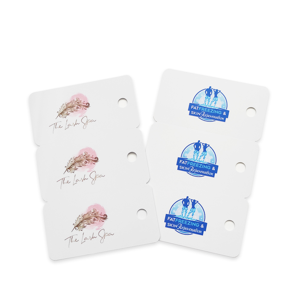 • Key Tag Combo Cards (Parent-Child Cards): A main card with detachable mini tags, ideal for loyalty programs and family memberships.